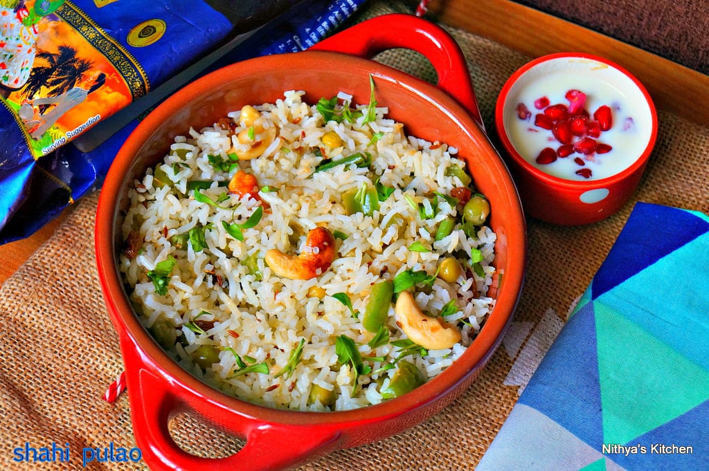 I served it with a dal based gravy and Anar raita. While coming back from college, my daughter was all in praises for the lunch and asked me to make some more the following day too for her friends. The joys of feeding your kids is highly pleasing and satisfactory. As I enjoy cooking, I agreed and will have to make this Shahi Pulao once again.