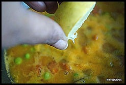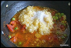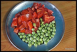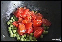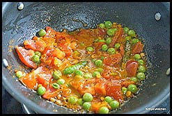 - Add tomatoes and green peas.