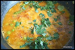 - Garnish with coriander leaves. Serve hot with chapathis or phulkas.
